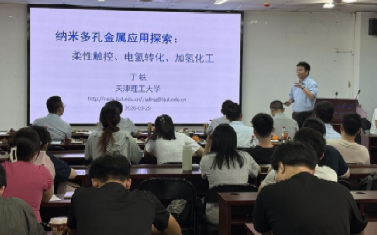 孙陆威教授分享了期刊的投稿与评审要点,丁轶教授围绕纳米多孔金属在柔性触控、电氢转化及加氢化工领域的应用展开探索,吴兴隆教授则介绍了钠电磷酸盐正极的晶格调控与性能研究成果,闫东鹏教授带来了功能超分子玻璃的前沿进展,何冠杰教授分享了高性能水系锌离子电池正极材料的设计思路。报告结束后,参会师生与各位专家围绕报告内容展开了热烈的讨论交流。