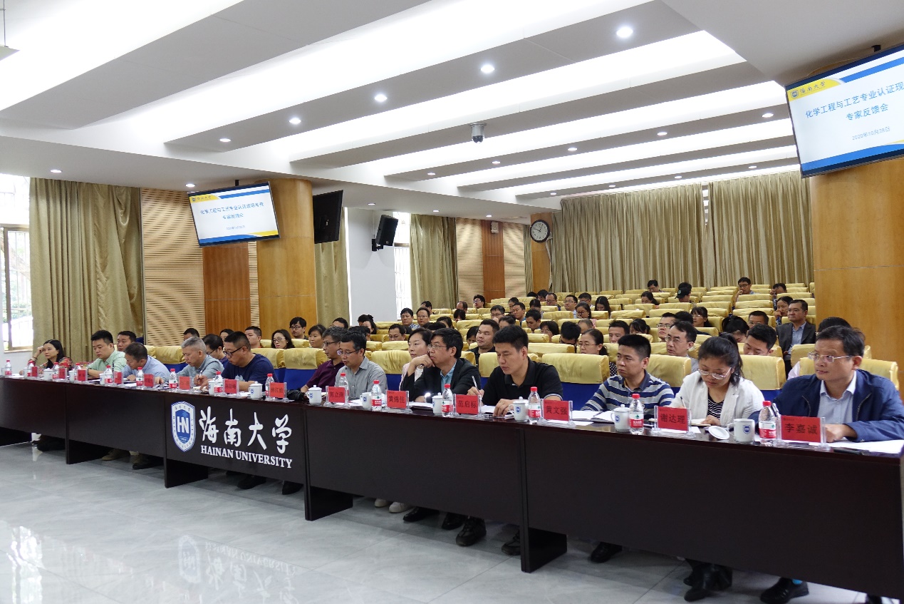副院梁志武教授,国家化工人才交流中心主任、中国石油和化学工业联合会教育培训处处长、教授级高级工程师叶皓,福建农林大学材料工程学院院长陈礼辉教授,哈尔滨理工大学电气与电子工程学院副院长陶大军教授参加考查。10月28日上午,专家组在办公楼一楼报告厅举行意见反馈会。学校党委常委、副校长陈险峰出席会议。