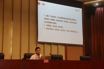 2004级学长的身份,向学弟学妹们表示了殷切的期望。他表示,诸如“互联网+”、“挑战杯”等具有一定权威的大型比赛,同学们应当秉持虚心学习、磨练自己的态度,在比赛中发现自己的不足并加以改正,即应“以赛代练”。刘咏平老师还表示同学们通过大赛获得的演讲能力、思维表达能力和人际交往能力将成为未来自身应聘企业岗位的竞争优势。