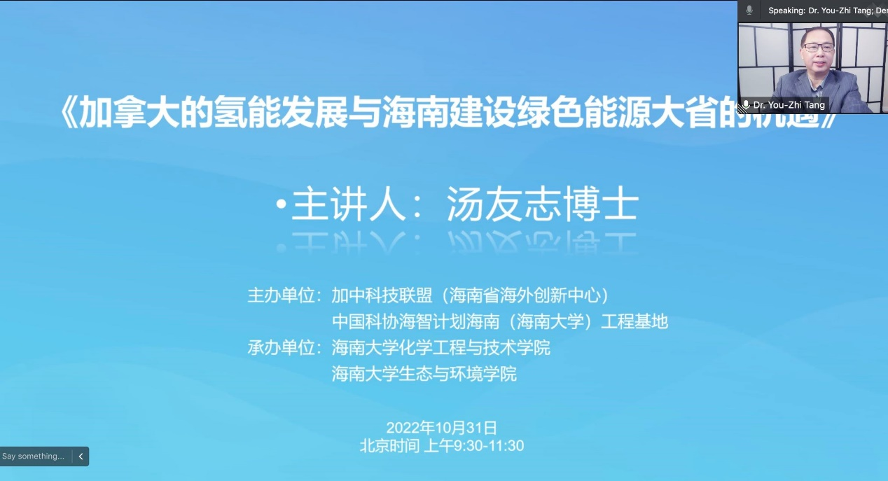 )工作基地作为联合主办单位,特邀加拿大环境与能源专家汤友志博士主讲,举办了题为《加拿大的氢能发展与海南建设绿色能源大省的机遇》的线上专题讲座。中国驻多伦多总领馆科技参赞彭浩、海南省科协一级调研员梁海珠、加中科技联盟共同主席兼秘书长叶军、加中环境与能源合作理事会副会长周锡强、欧乐影院