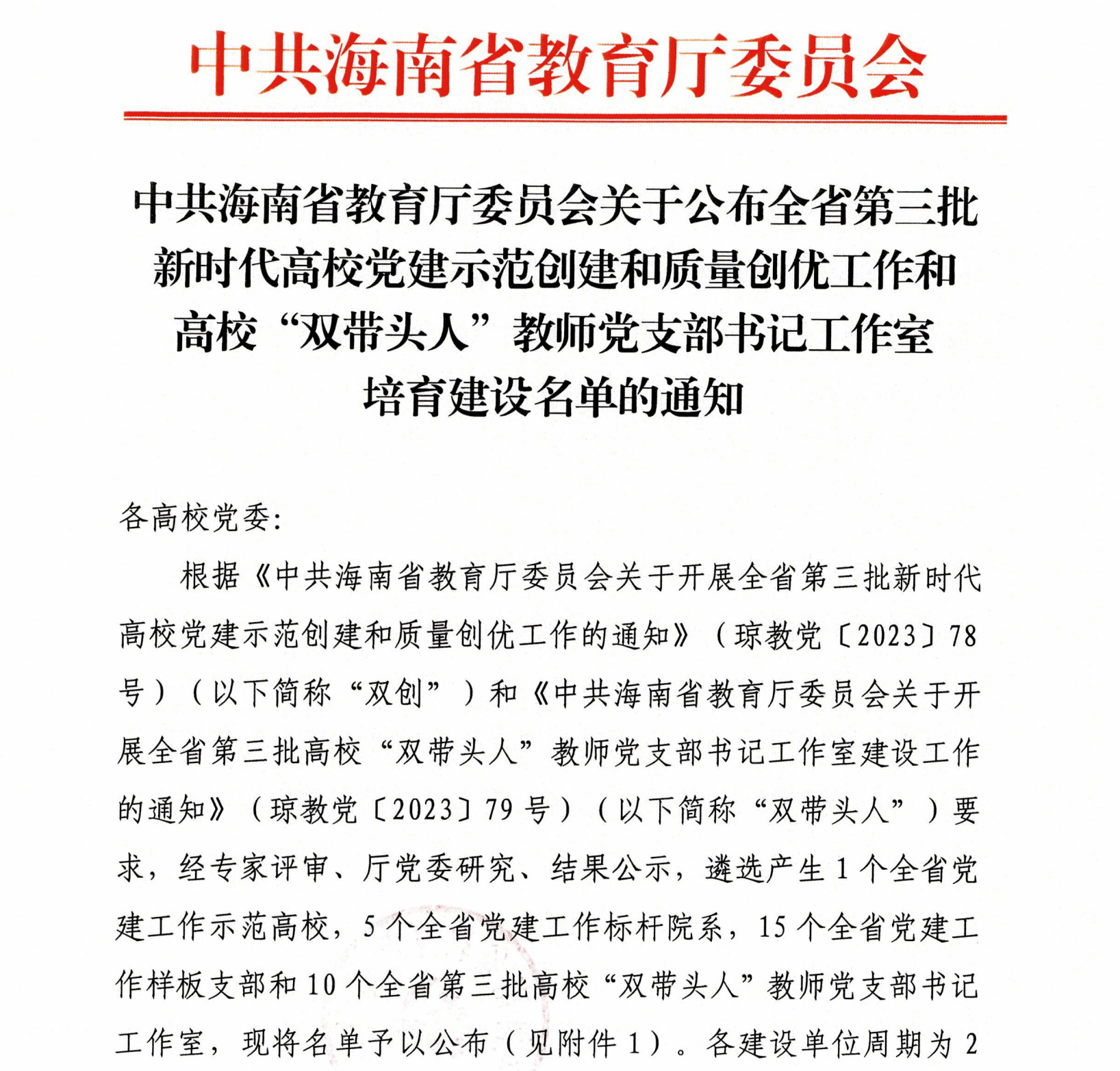 近日,省教育厅委员会公布了全省第三批新时代高校党建示范创建和质量创优工作和高校“双带头人”教师党支部书记工作室培育建设名单,其中第三批全省“双带头人”教师党支部书记工作室培育创建单位10个,欧乐影院