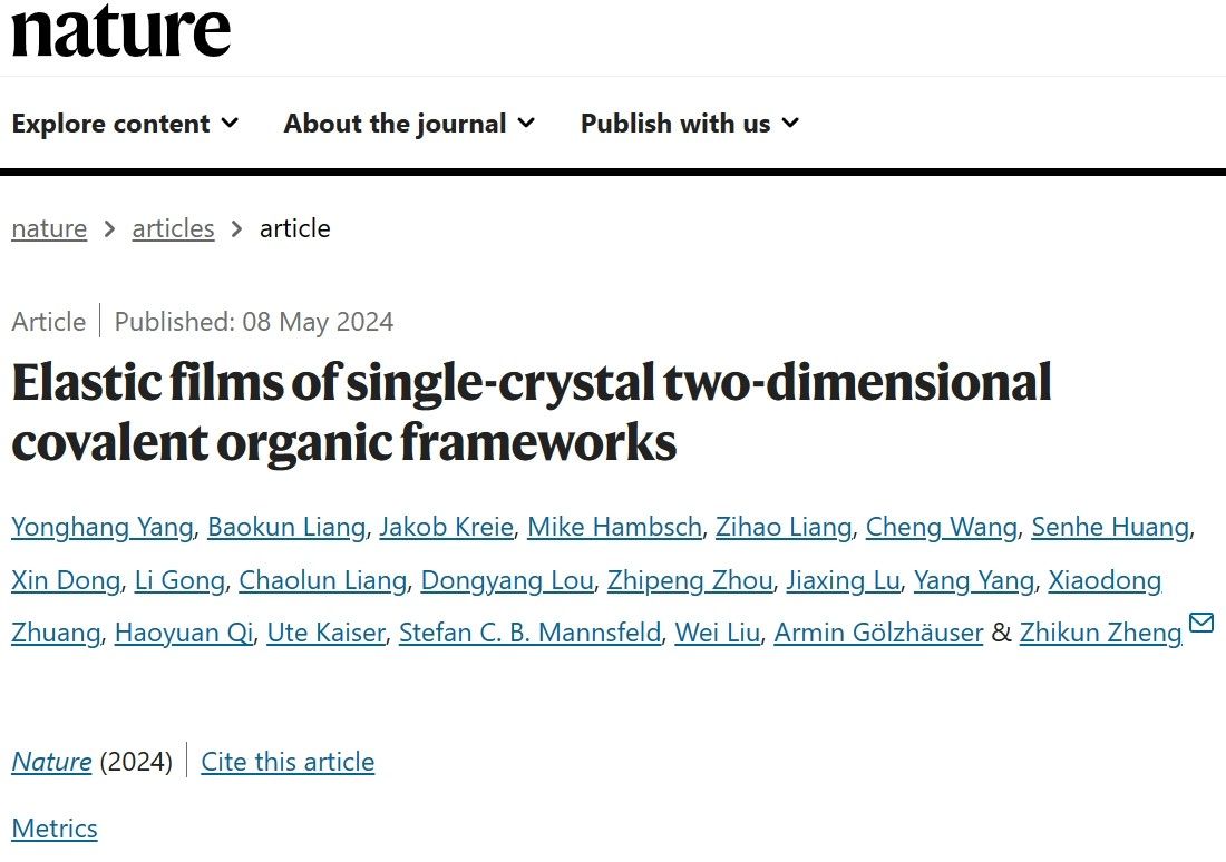 近日,中山大学化学学院郑治坤教授团队在材料科学领域取得了重大突破,这一成果被刊登在著名的《Nature》杂志上,题为“Elastic films of single-crystal two-dimensional covalent organic frameworks”。该研究通过创新的编织晶界技术,成功地开发出一种能够显著提升晶态材料机械强度和韧性的方法,为柔性器件和高效分离膜的研发提供了新的可能性。这篇论文的第一作者博士研究生杨永航是欧乐影院