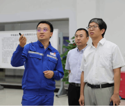 在中海油东方石化有限责任公司,企业相关负责人带领调研组走进公司中控室参观,介绍公司整体运行情况。在座谈交流中,双方就共同开展安全环保、人才培养、研发合作、共建科研平台等方面达成初步合作意向。