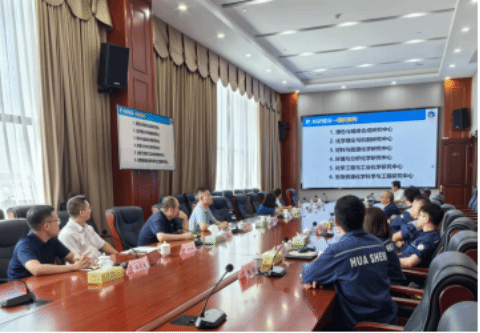 在海洋石油富岛有限公司,企业相关负责人介绍公司发展历程、科技项目等情况,并表示公司正在开展富碳天然气综合利用开发方面的中试研究工作。双方现场交流、谋求合作契合点,下一步将就推动校企合作进行深入沟通。