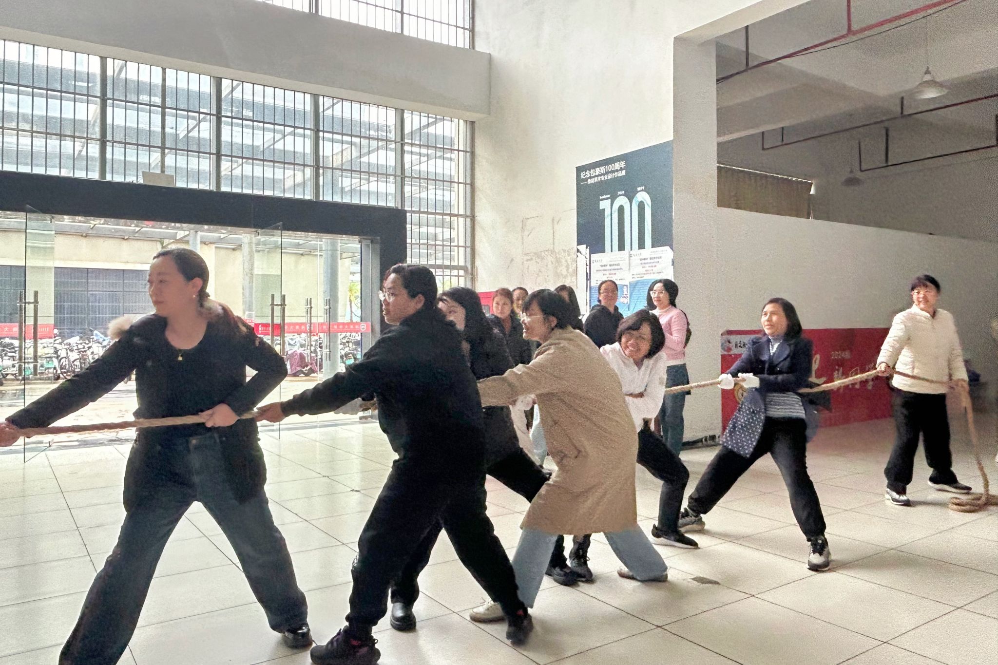 工会组织了一场别开生面的女职工拔河比赛。院党委副书记(主持工作)杨玮婷出席活动,学院近70名女教职工以饱满的热情参加了此次角逐。