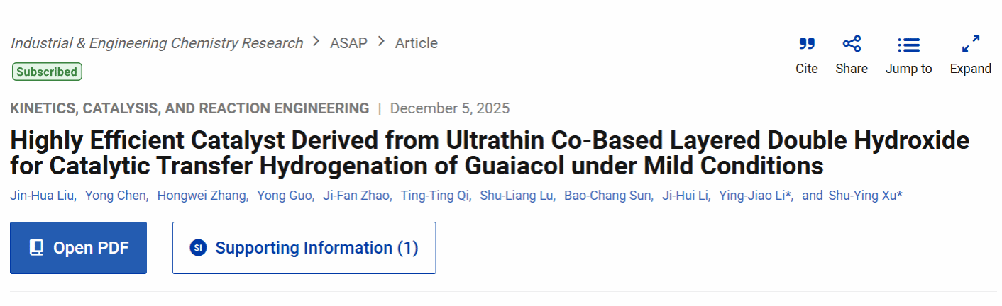近日,化工三大刊之一 Industrial & Engineering Chemistry Research(IECR) 在线发表题为 “Highly Efficient Catalyst Derived from Ultrathin Co-Based Layered Double Hydroxide for Catalytic Transfer Hydrogenation of Guaiacol under Mild Conditions” 的研究论文。欧乐影院