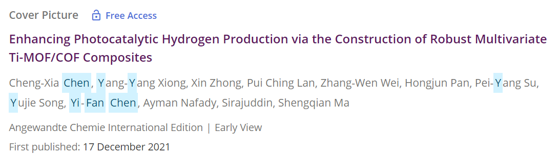 我校化工学院青年教师陈逸凡与美国北德克萨斯大学化学院马胜前教授团队,在国际学术期刊《Angewandte Chemie International Edition》上发表题为“EnhancingPhotocatalyticHydrogenProductionviatheConstruction of Robust Multivariate Ti-MOF/COF Composite”的研究论文(2021年12月17在线发表,doi.org/10.1002/ange.202114071)。欧乐影院