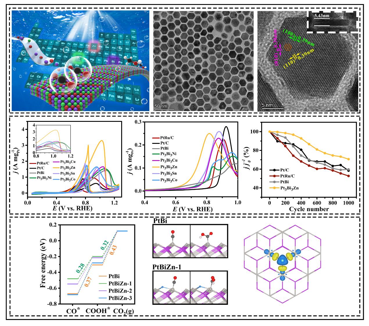 近日,田新龙教授团队在中国科技期刊卓越行动计划-重点期刊《Journal of Energy Chemistry》(IF=9.676)发表研究论文,论文题目为“Rational design ternary platinum based electrocatalysts for effective methanol oxidation reaction”。2019级硕士研究生田浩为论文第一作者,李静讲师、邓培林讲师和田新龙教授为共同通讯作者。