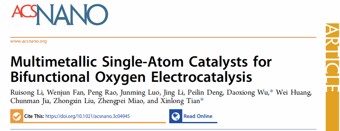 近期,田新龙教授团队在《ACS Nano》(IF =17)发表题为“Multi-metallic single-atom catalysts for bifunctional oxygen electrocatalysis”的研究论文。欧乐影院