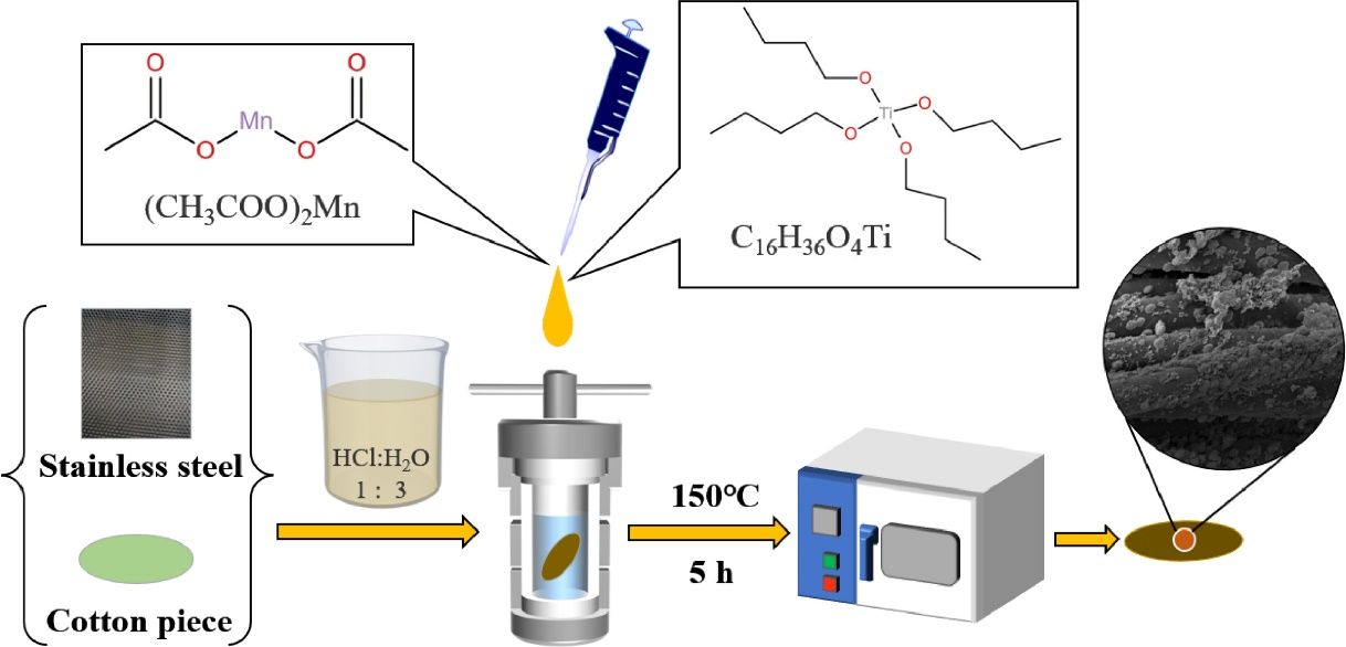 Mn-TiO2/不锈钢绵网的制造示意图。