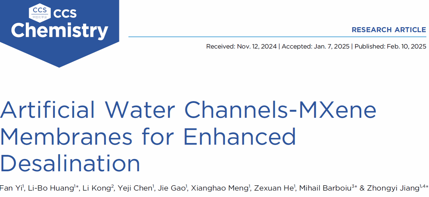 近期,姜忠义教授课题组在中国化学会创办的高水平旗舰期刊《CCS Chemistry》(IF = 9.4)在线发表题为“Artificial Water Channel-MXene Membranes for Enhanced Desalination”的研究论文。欧乐影院