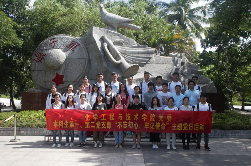 为隆重庆祝中国共产党成立98周年和中华人民共和国成立70周年,深入学习习近平新时代中国特色社会主义思想和党的十九大精神,提升基层党组织的组织力,激发基层党组织和党员活力,加强党员队伍建设。6月22日,化学工程与技术学院党委王林桂副书记、王克岩老师带领本科生第一第二党支部全体党员前往红色娘子军纪念园、美丽乡村沙美村和中国(海南)南海博物馆开展“不忘初心、牢记使命”主题党日活动。