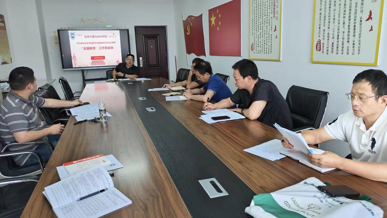 化学工程与技术学院党委召开学习贯彻习近平新时代中国特色社会主义思想主题教育务虚会。会议由学院党委书记冯广波主持,学院党委委员、班子成员及基层党支部书记参加会议。