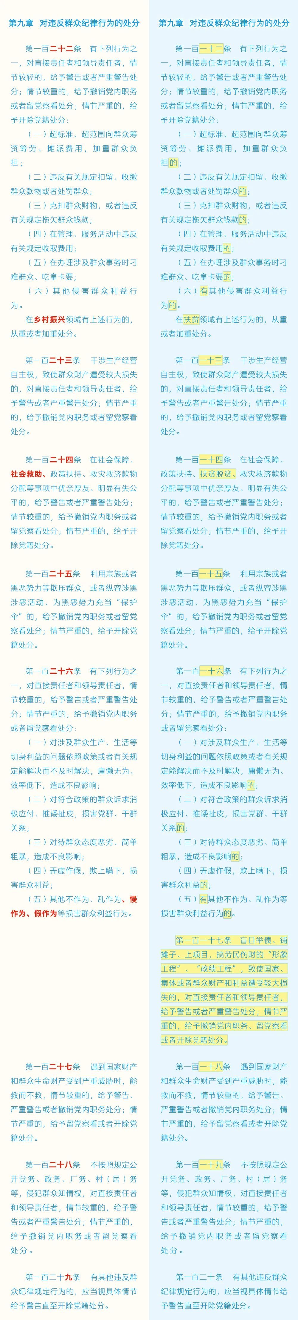 学条例 守党纪|《中国共产党纪律处分条例》修订前后对照表