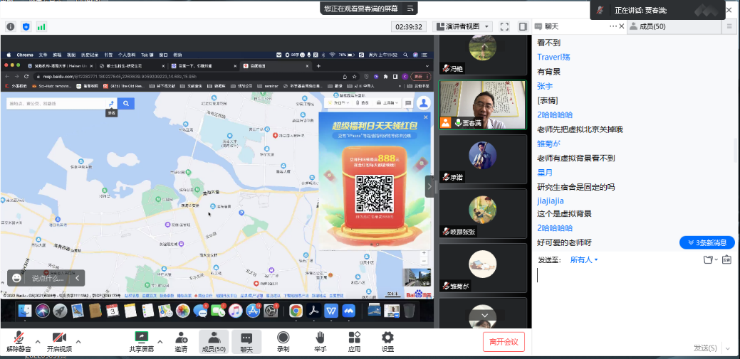 贾春满老师详细介绍了欧乐影院 、化学工程与技术学院、本学院的团队发展以及具体的考研招生情况。贾老师以诙谐幽默的语言,生动有趣的讲解让同学们更加深入地了解了欧乐影院 化学工程与技术学院。在精彩的互动环节,在线的学生们踊跃向贾老师提问,贾老师回答了学生在线提出的问题,现场互动精彩纷呈,为本次宣讲会画上了圆满句号。