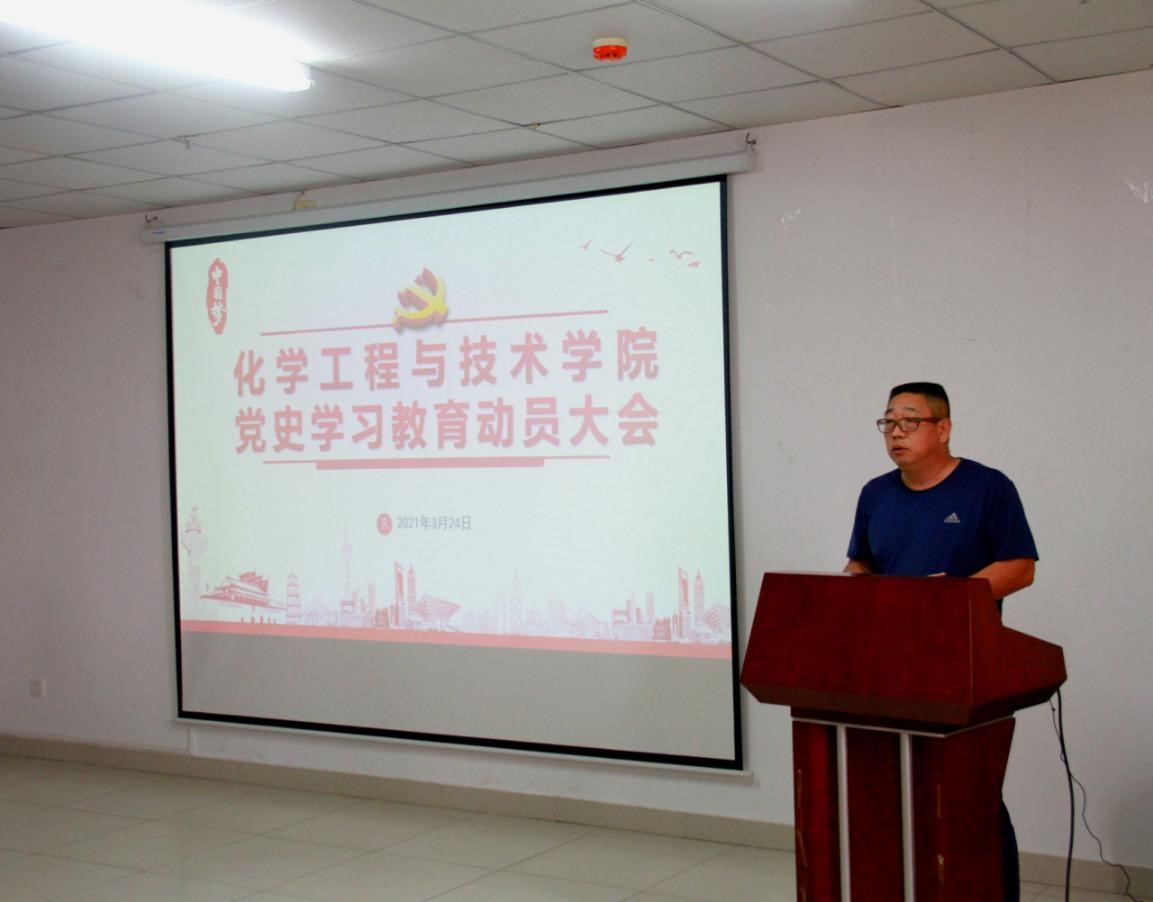 为深入学习贯彻习近平总书记在党史学习教育动员大会的重要讲话精神,落实好党中央和省委、校党委的决策部署,高质量开展好党史学习教育,3月24日下午,欧乐影院 化学工程与技术学院于研发楼710召开了党史学习教育动员大会,学院党委书记冯广波、党委副书记王林桂、学工办主任王克岩及全体学生党员参加本次会议,党建组织员陈蕾蕾老师主持会议。